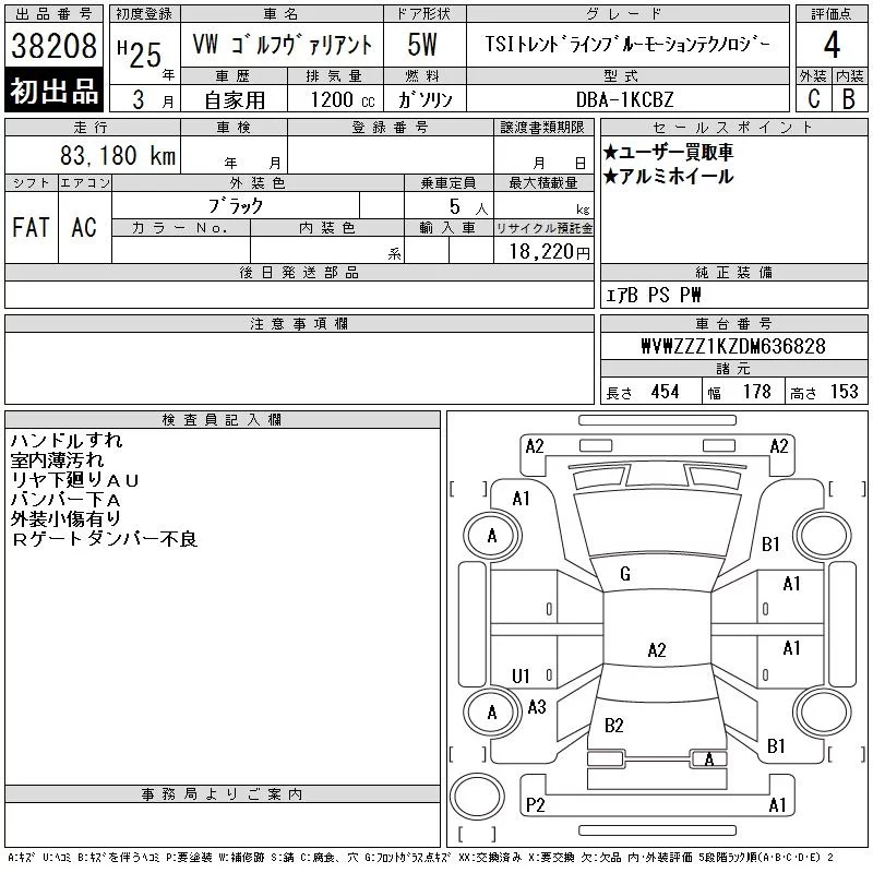 Volkswagen GOLF VARIANT с аукциона Японии CAA Tokyo лот № 38208