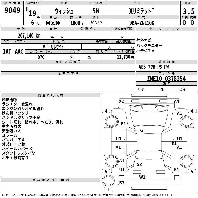 Toyota WISH с аукциона Японии TAA Shikoku лот № 9049