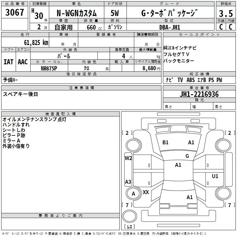 Honda N WGN с аукциона Японии TAA Shikoku лот № 3067