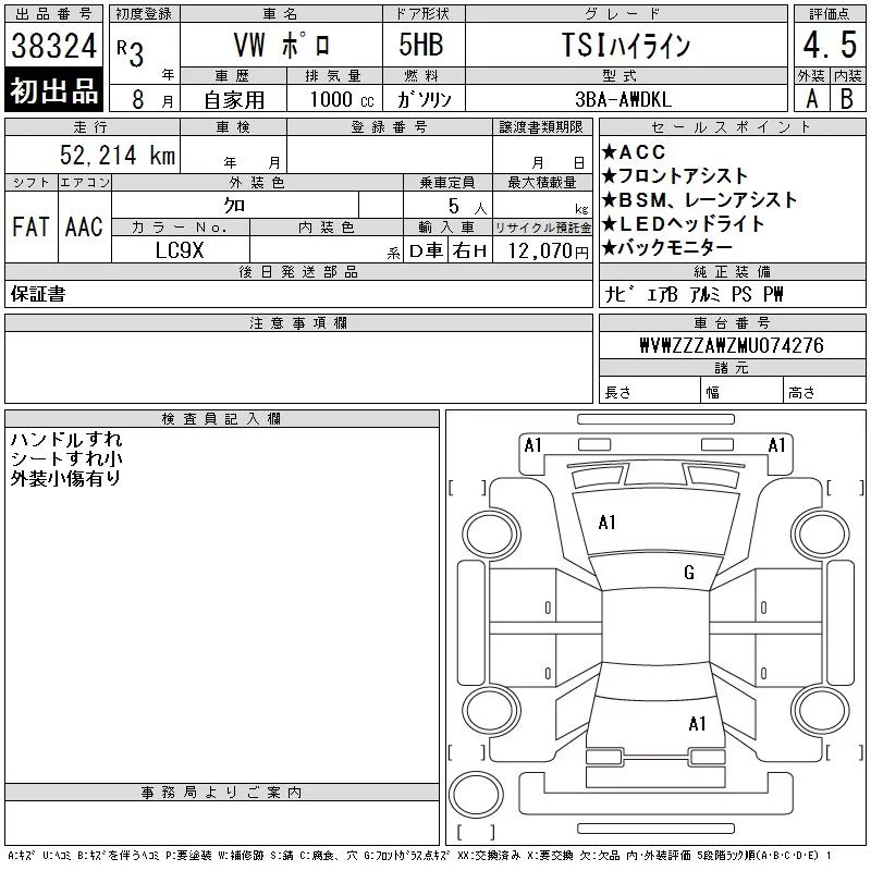 Volkswagen Polo с аукциона Японии CAA Tokyo лот № 38324