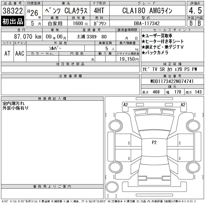 Mercedes-Benz CLA CLASS с аукциона Японии CAA Tokyo лот № 38322