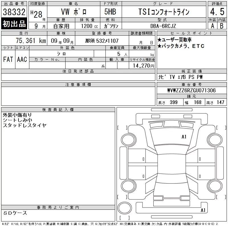 Volkswagen Polo с аукциона Японии CAA Tokyo лот № 38332