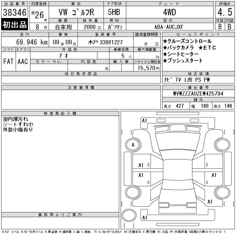 Volkswagen Golf с аукциона Японии CAA Tokyo лот № 38346