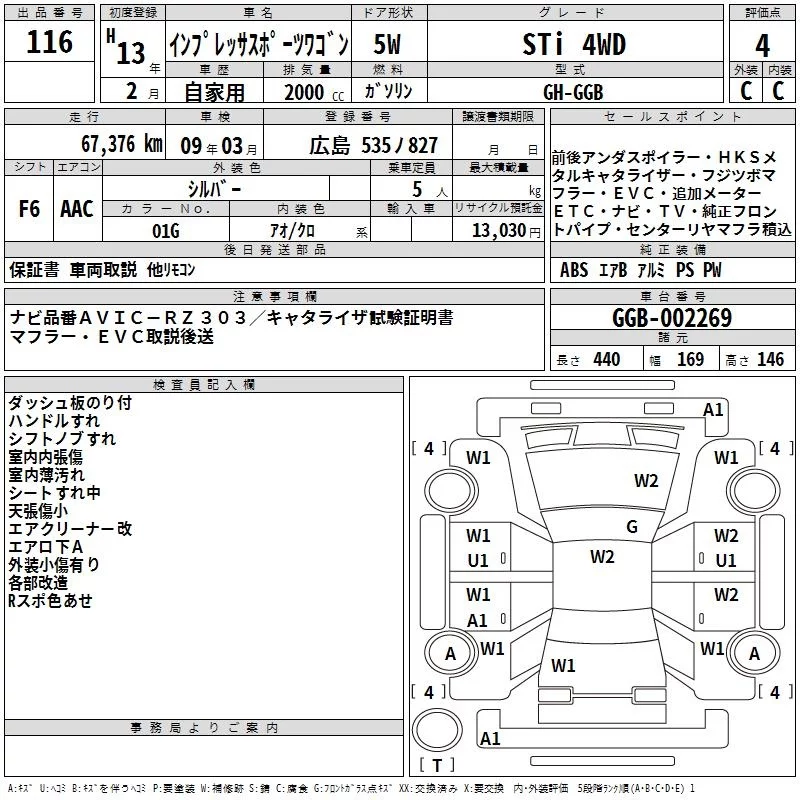 Subaru IMPREZA с аукциона Японии TAA Hiroshima лот № 116