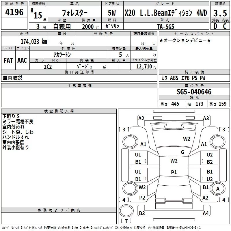 Subaru FORESTER с аукциона Японии TAA Hiroshima лот № 4196