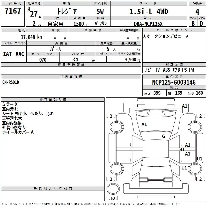 Subaru TREZIA с аукциона Японии TAA Hiroshima лот № 7167