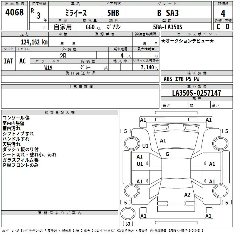 Daihatsu MIRA E S с аукциона Японии TAA Hiroshima лот № 4068