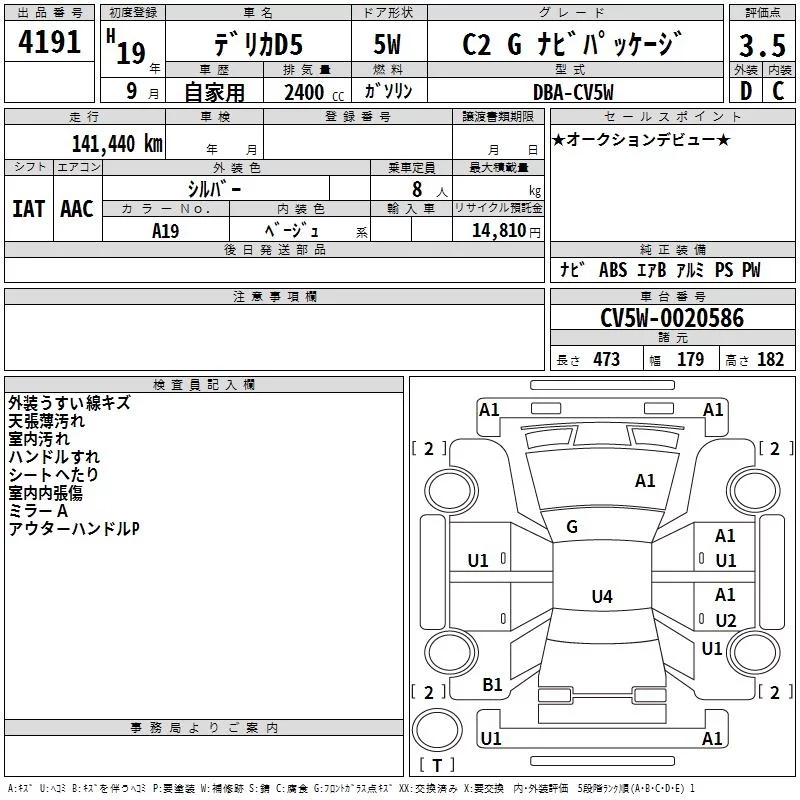 Mitsubishi DELICA D5 с аукциона Японии TAA Hiroshima лот № 4191