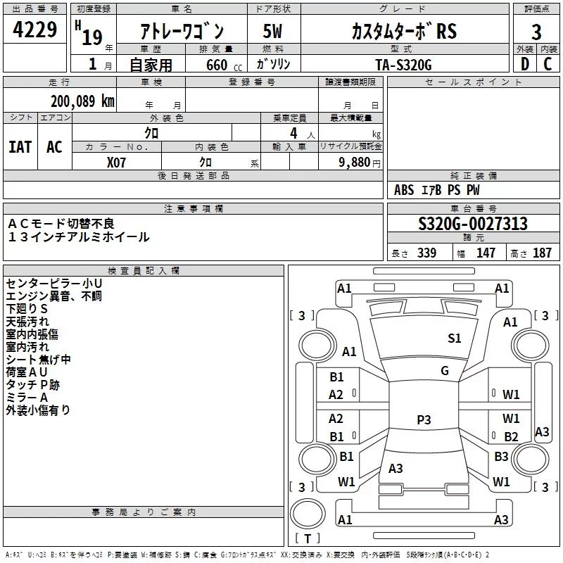 Daihatsu Atrai Wagon с аукциона Японии TAA Hiroshima лот № 4229