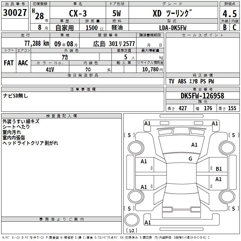 Mazda CX-3 с аукциона Японии TAA Hiroshima лот № 30027