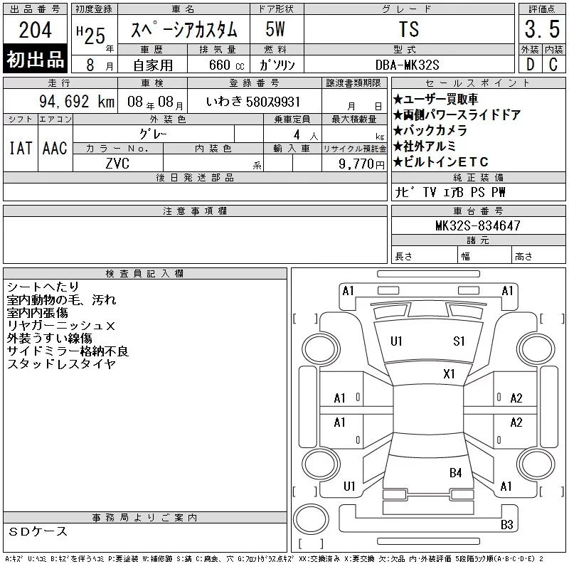 Suzuki SPACIA с аукциона Японии CAA Tokyo лот № 204