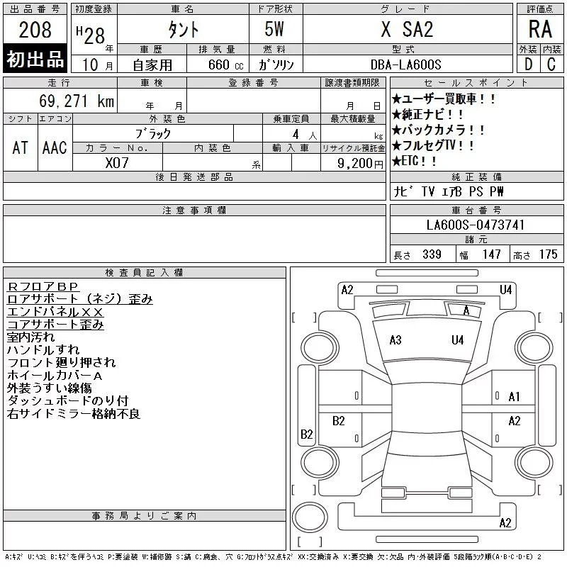 Daihatsu TANTO с аукциона Японии CAA Tokyo лот № 208