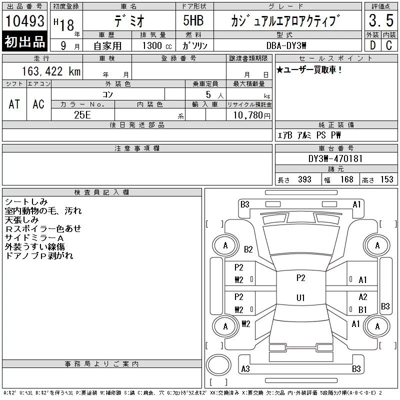 Mazda DEMIO с аукциона Японии CAA Tokyo лот № 10493