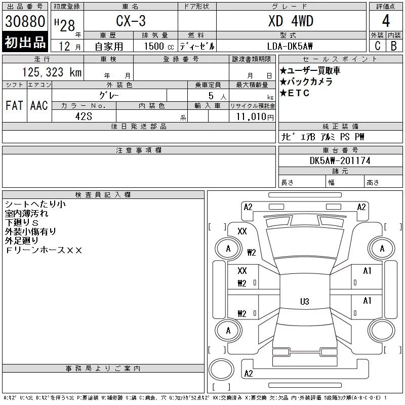 Mazda CX-3 с аукциона Японии CAA Tokyo лот № 30880