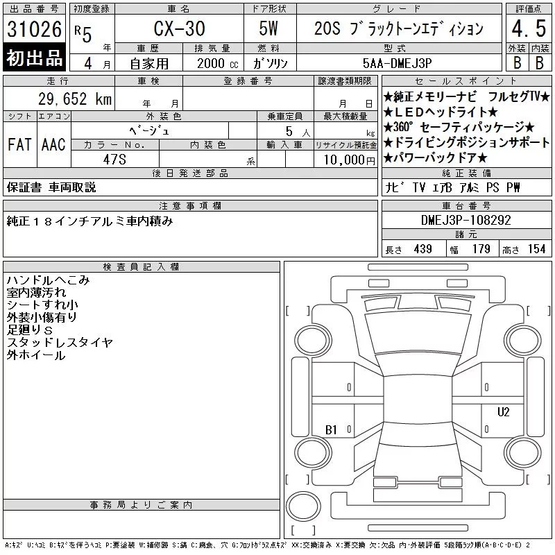Mazda CX-30 с аукциона Японии CAA Tokyo лот № 31026