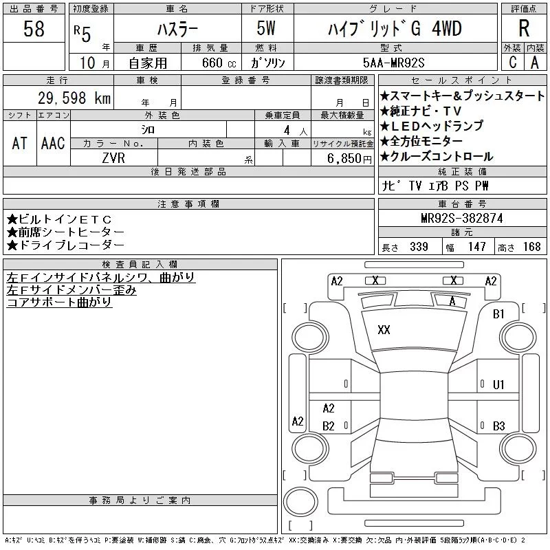 Suzuki HUSTLER с аукциона Японии CAA Gifu лот № 58