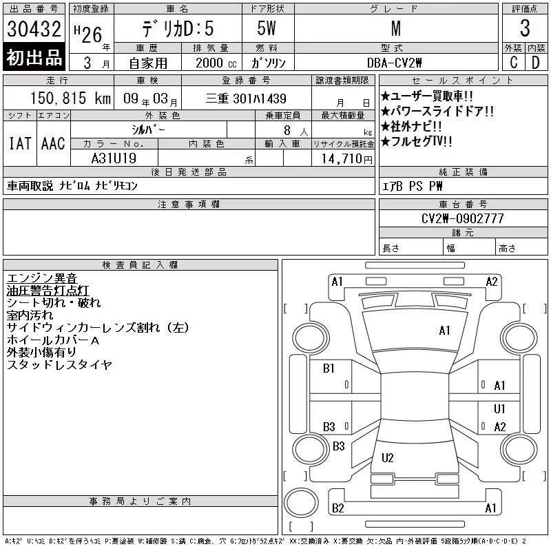 Mitsubishi DELICA D5 с аукциона Японии CAA Gifu лот № 30432
