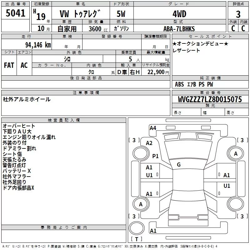 Volkswagen Touareg с аукциона Японии TAA Kinki лот № 5041