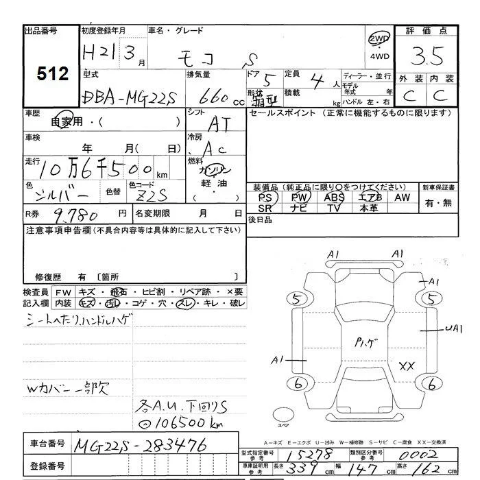 Nissan MOCO с аукциона Японии JU Shizuoka лот № 512