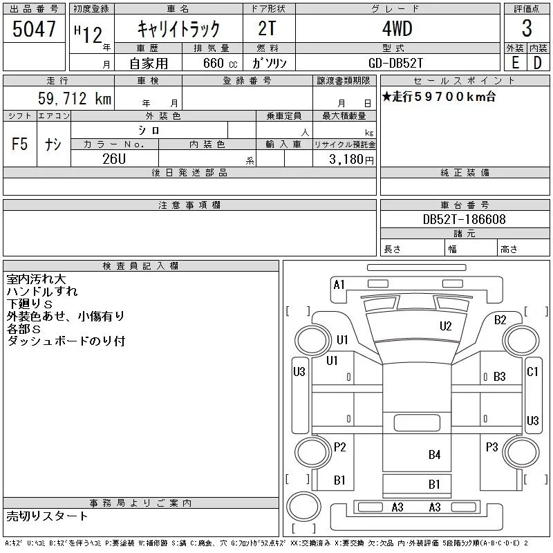 Suzuki CARRY TRUCK с аукциона Японии CAA Tohoku лот № 5047
