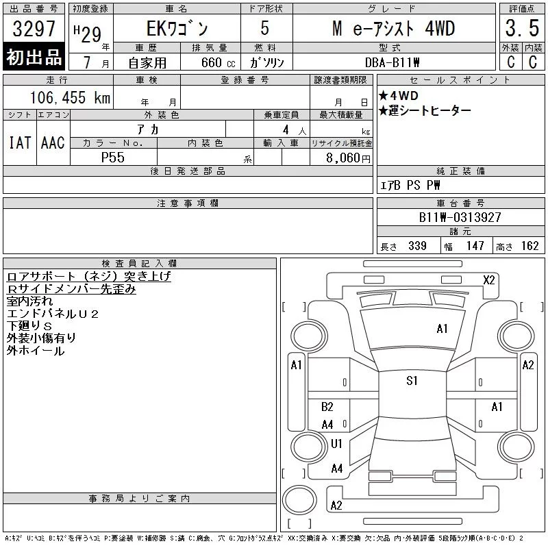Mitsubishi EK WAGON с аукциона Японии CAA Tohoku лот № 3297