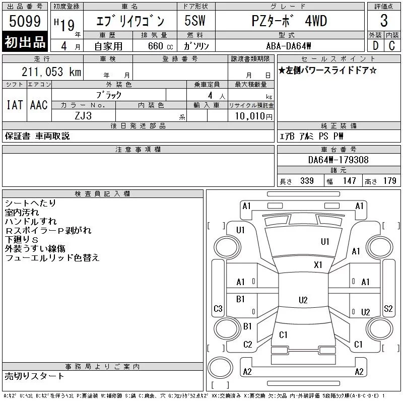 Suzuki EVERY WAGON с аукциона Японии CAA Tohoku лот № 5099