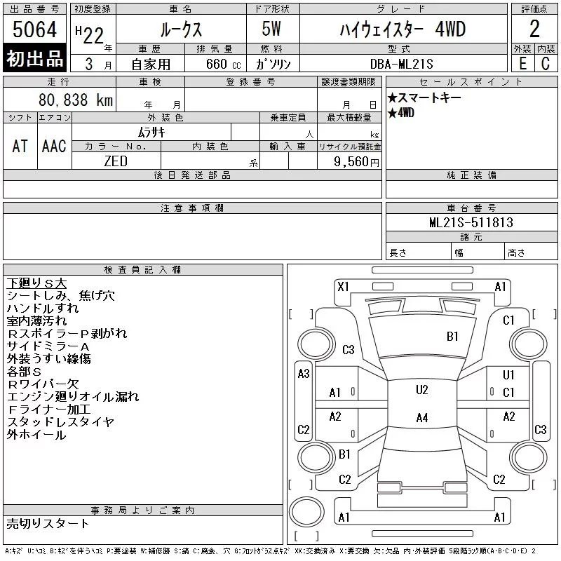 Nissan ROOX с аукциона Японии CAA Tohoku лот № 5064