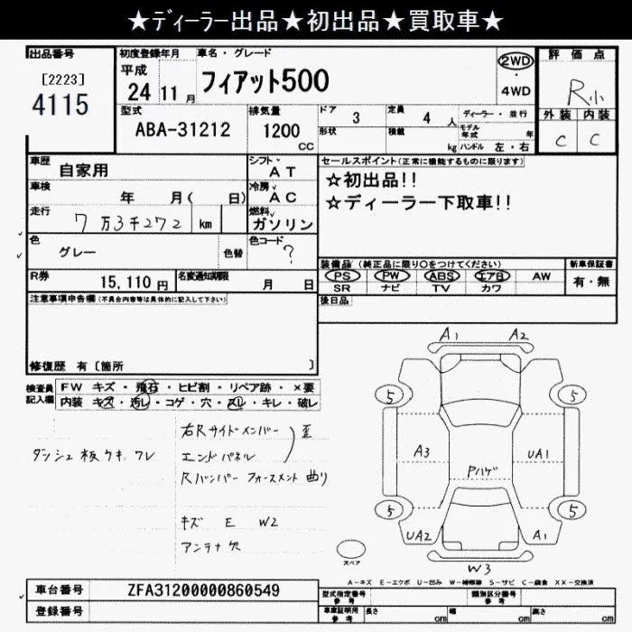 Fiat 500 с аукциона Японии JU Saitama лот № 4115