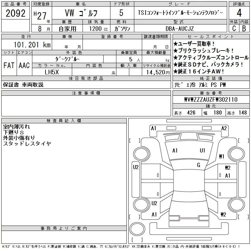 Volkswagen Golf с аукциона Японии CAA Tohoku лот № 2092