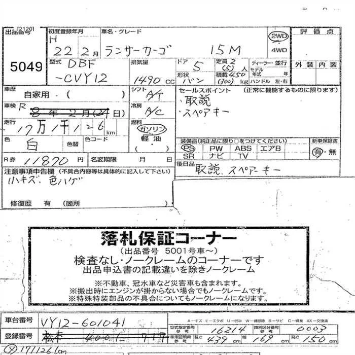 Mitsubishi LANCER VAN с аукциона Японии JU Nagano лот № 5049