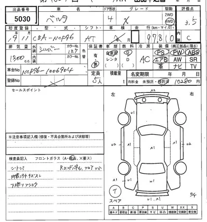 Toyota BELTA с аукциона Японии SAA Sapporo лот № 5030