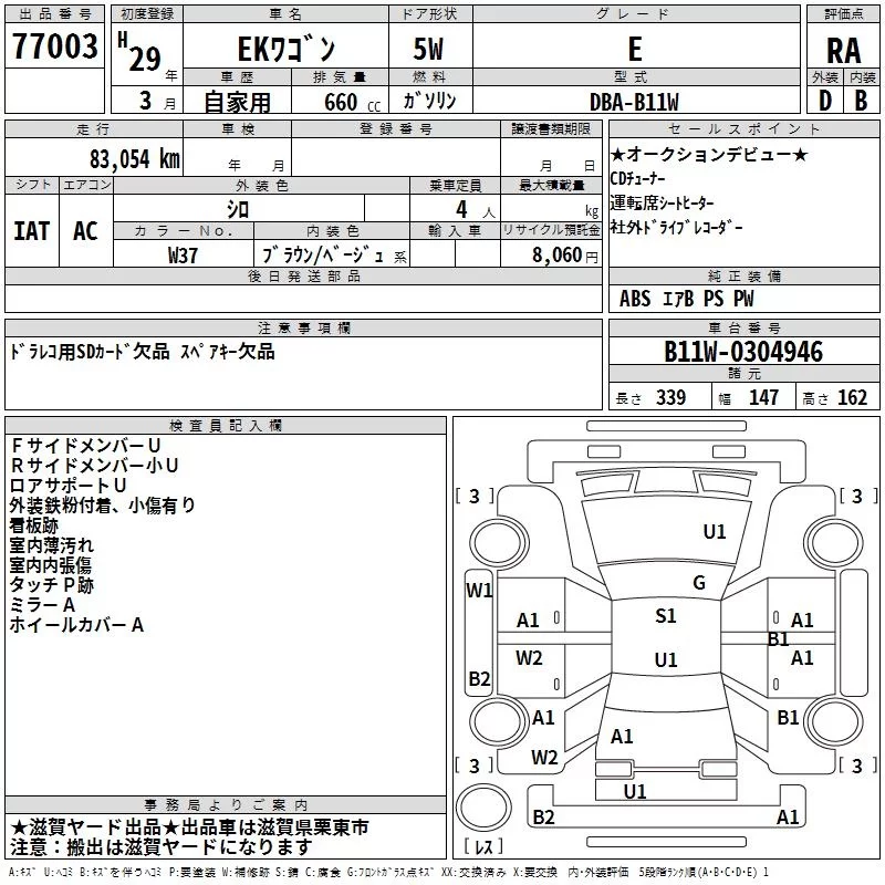 Mitsubishi EK WAGON с аукциона Японии TAA Kinki лот № 77003