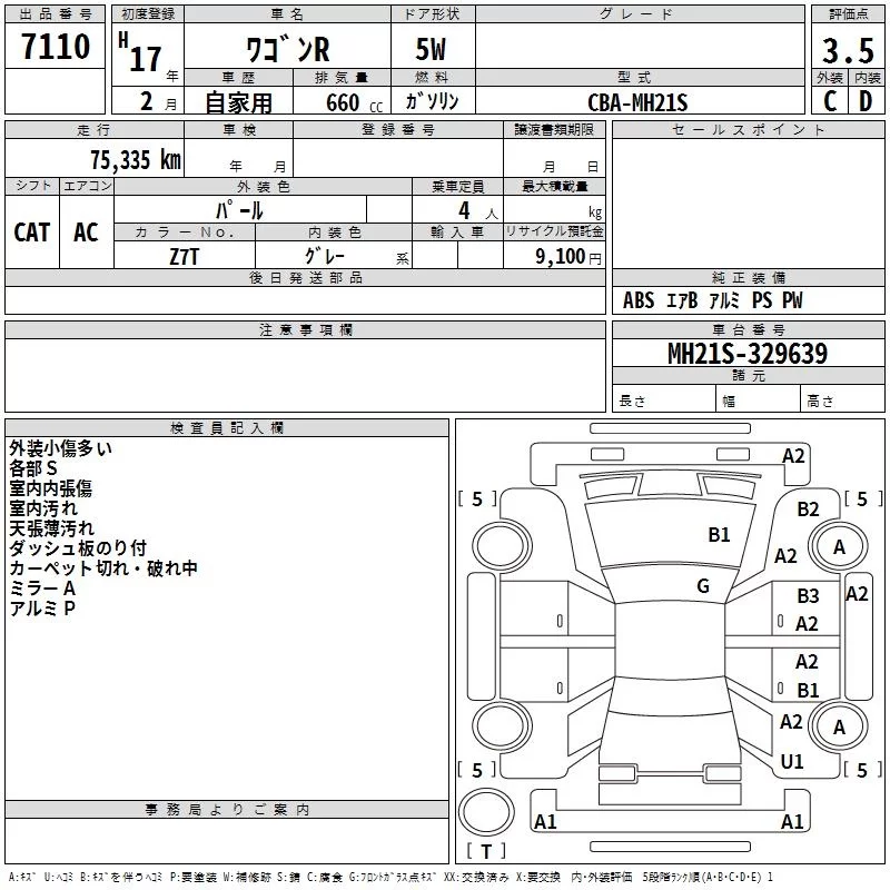 Suzuki WAGON R с аукциона Японии TAA Kinki лот № 7110