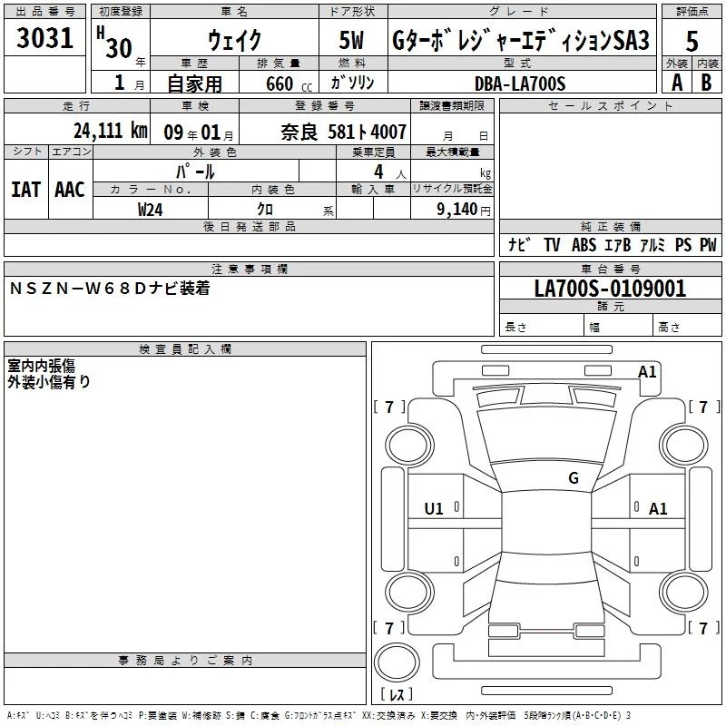 Daihatsu WAKE с аукциона Японии TAA Kinki лот № 3031