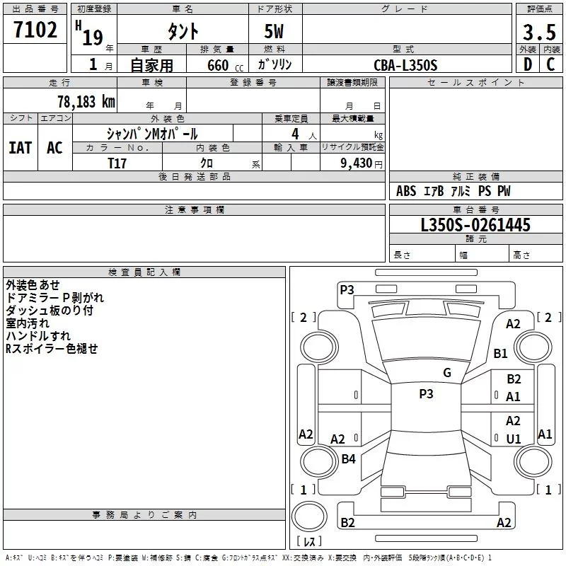 Daihatsu TANTO с аукциона Японии TAA Kinki лот № 7102