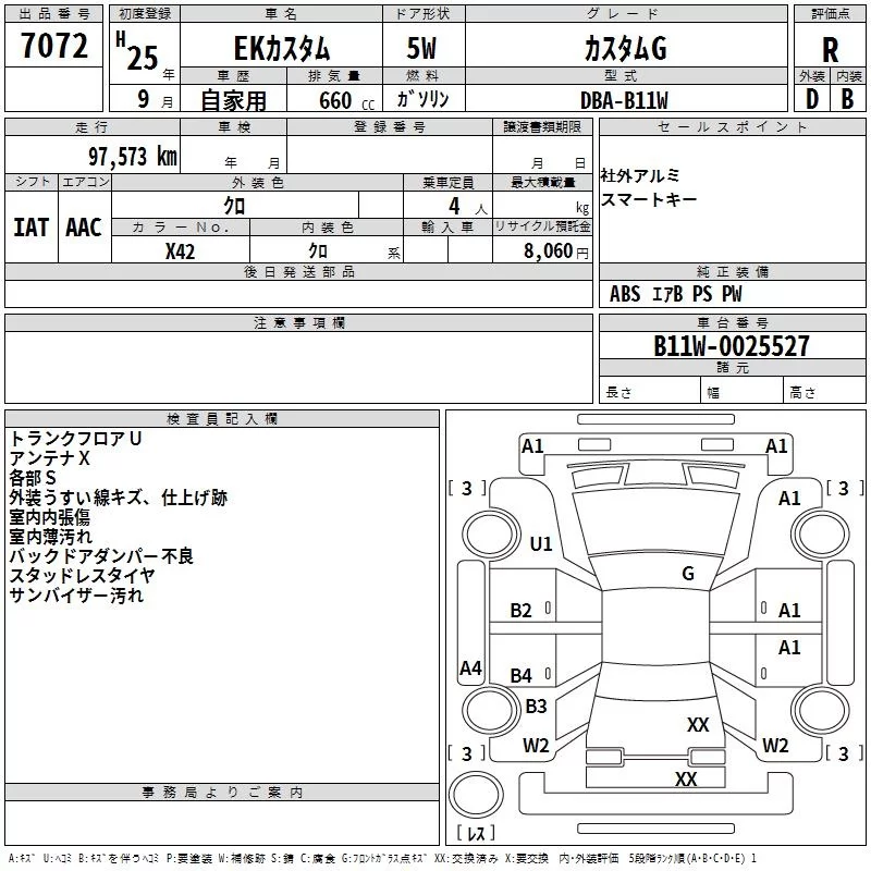 Mitsubishi EK CUSTOM с аукциона Японии TAA Kinki лот № 7072