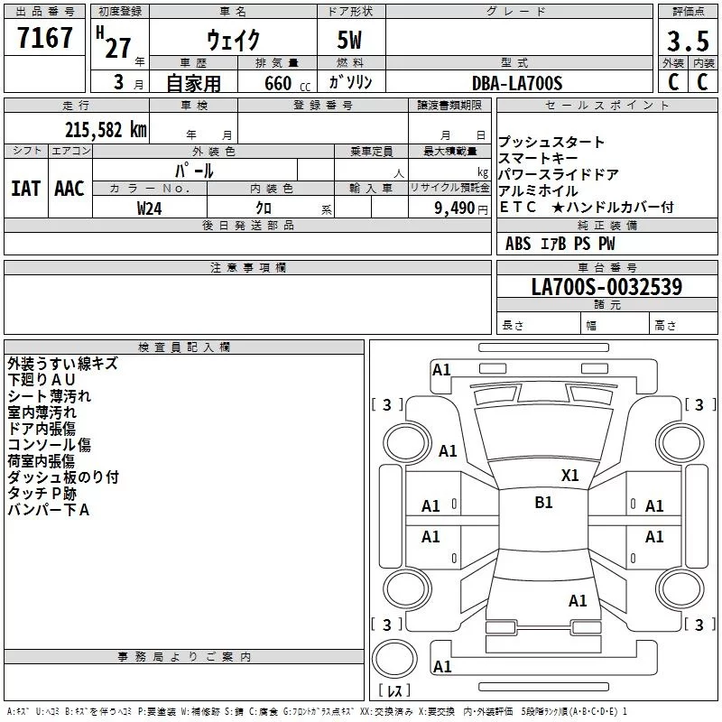 Daihatsu WAKE с аукциона Японии TAA Kinki лот № 7167