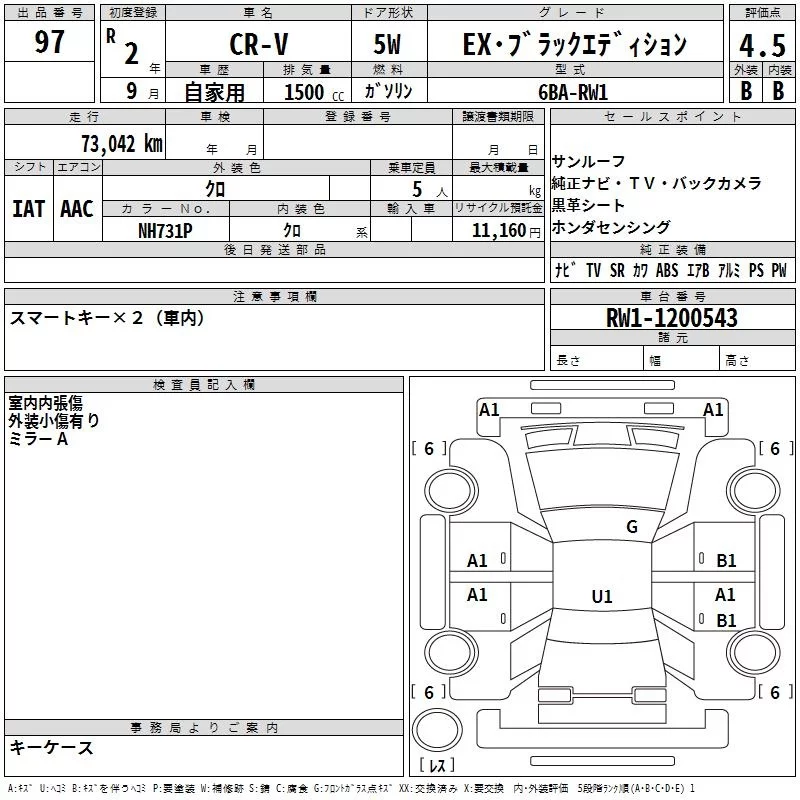 Honda CR-V с аукциона Японии TAA Kyushu лот № 97