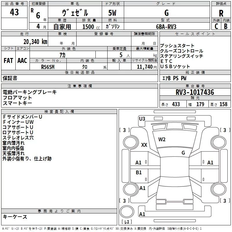 Honda VEZEL с аукциона Японии TAA Kyushu лот № 43