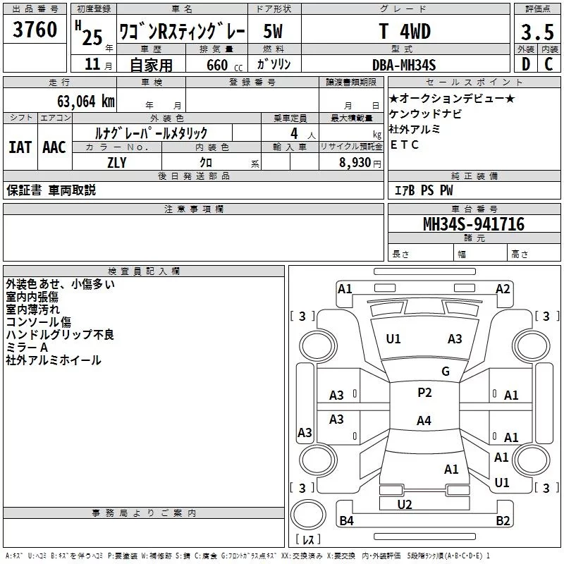 Suzuki WAGON R с аукциона Японии TAA Kyushu лот № 3760