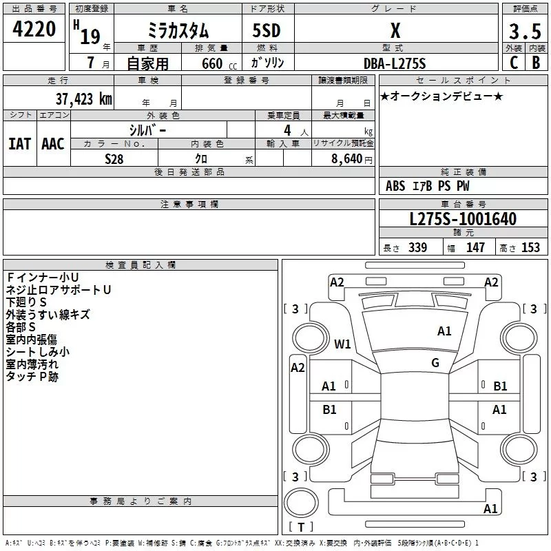 Daihatsu MIRA с аукциона Японии TAA Kyushu лот № 4220