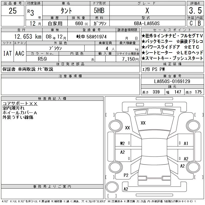 Daihatsu TANTO с аукциона Японии CAA Chubu лот № 25