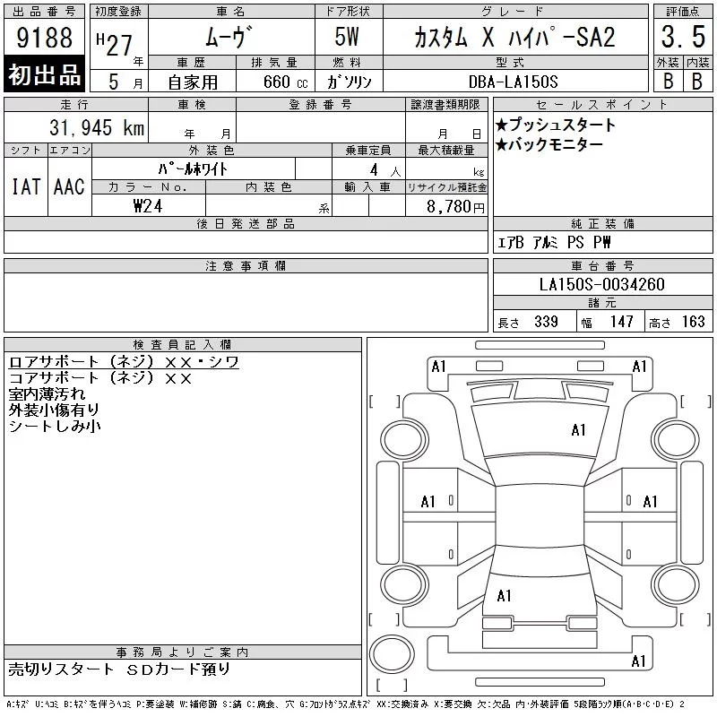 Daihatsu MOVE с аукциона Японии CAA Chubu лот № 9188