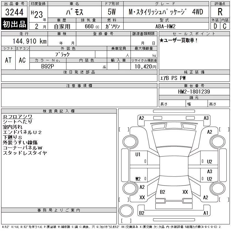 Honda VAMOS с аукциона Японии CAA Chubu лот № 3244