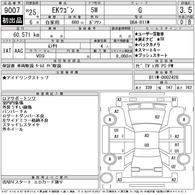 Mitsubishi EK WAGON с аукциона Японии CAA Chubu лот № 9007