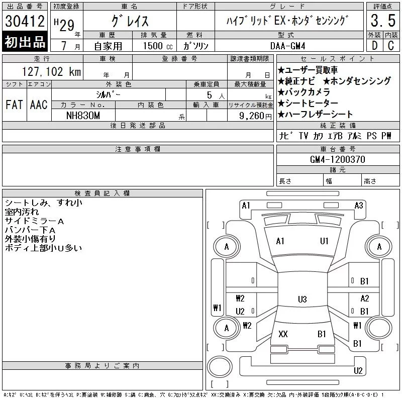 Honda GRACE с аукциона Японии CAA Chubu лот № 30412