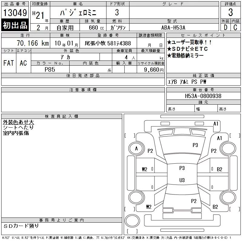 Mitsubishi PAJERO MINI с аукциона Японии CAA Chubu лот № 13049