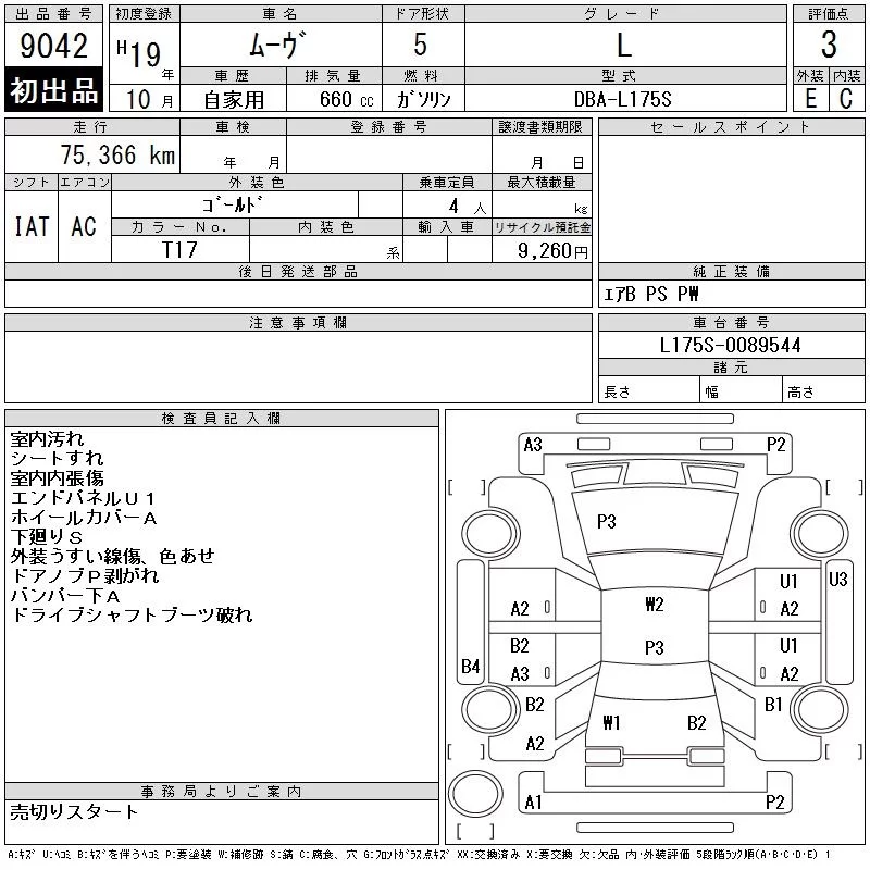 Daihatsu MOVE с аукциона Японии CAA Chubu лот № 9042
