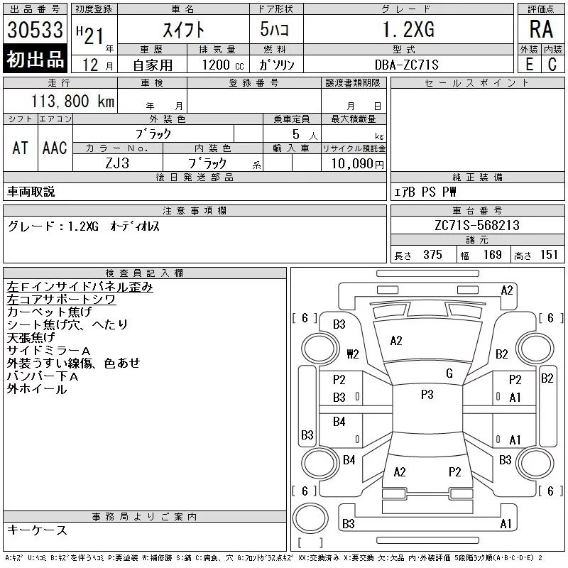 Suzuki SWIFT с аукциона Японии CAA Chubu лот № 30533