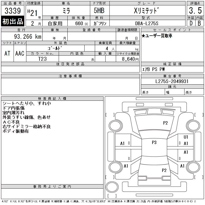 Daihatsu MIRA с аукциона Японии CAA Chubu лот № 3339